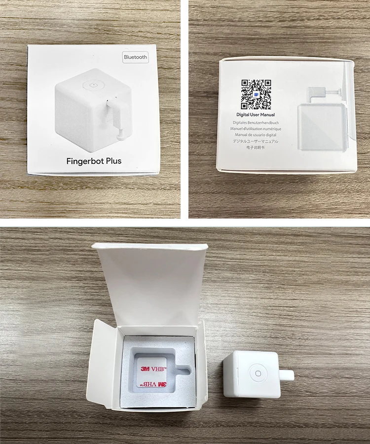3.This small robot allows you to replace the robot's arm, you just need to tape the finger bot right next to a rocker switch or button with a stripe of the sticker.