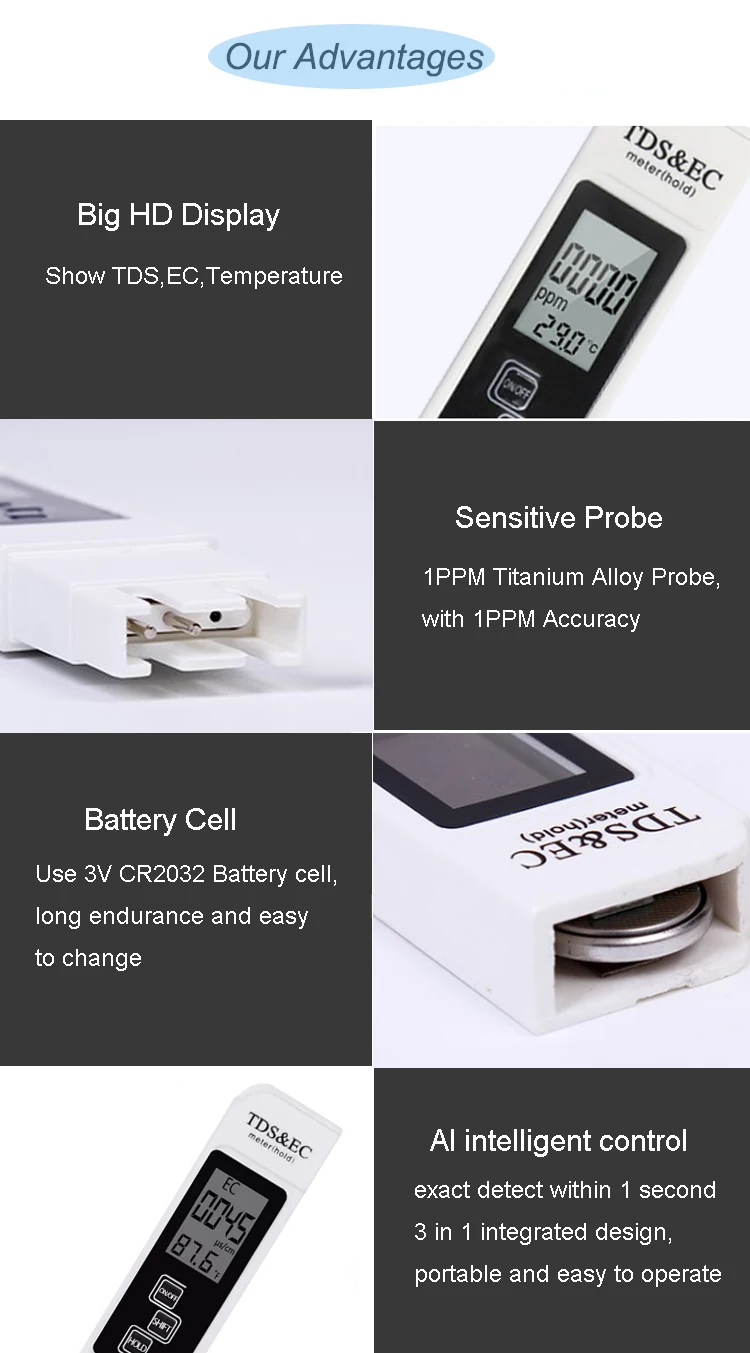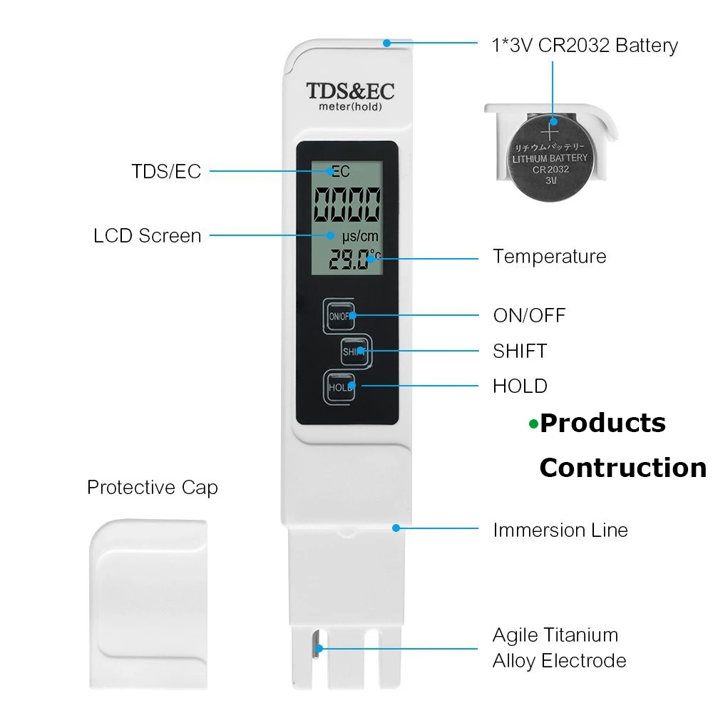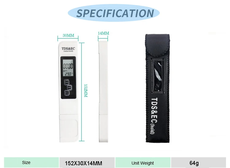 TDS & EC test pen (backlight) | CTR-TDS007 | 0-9999 | ± 2% |