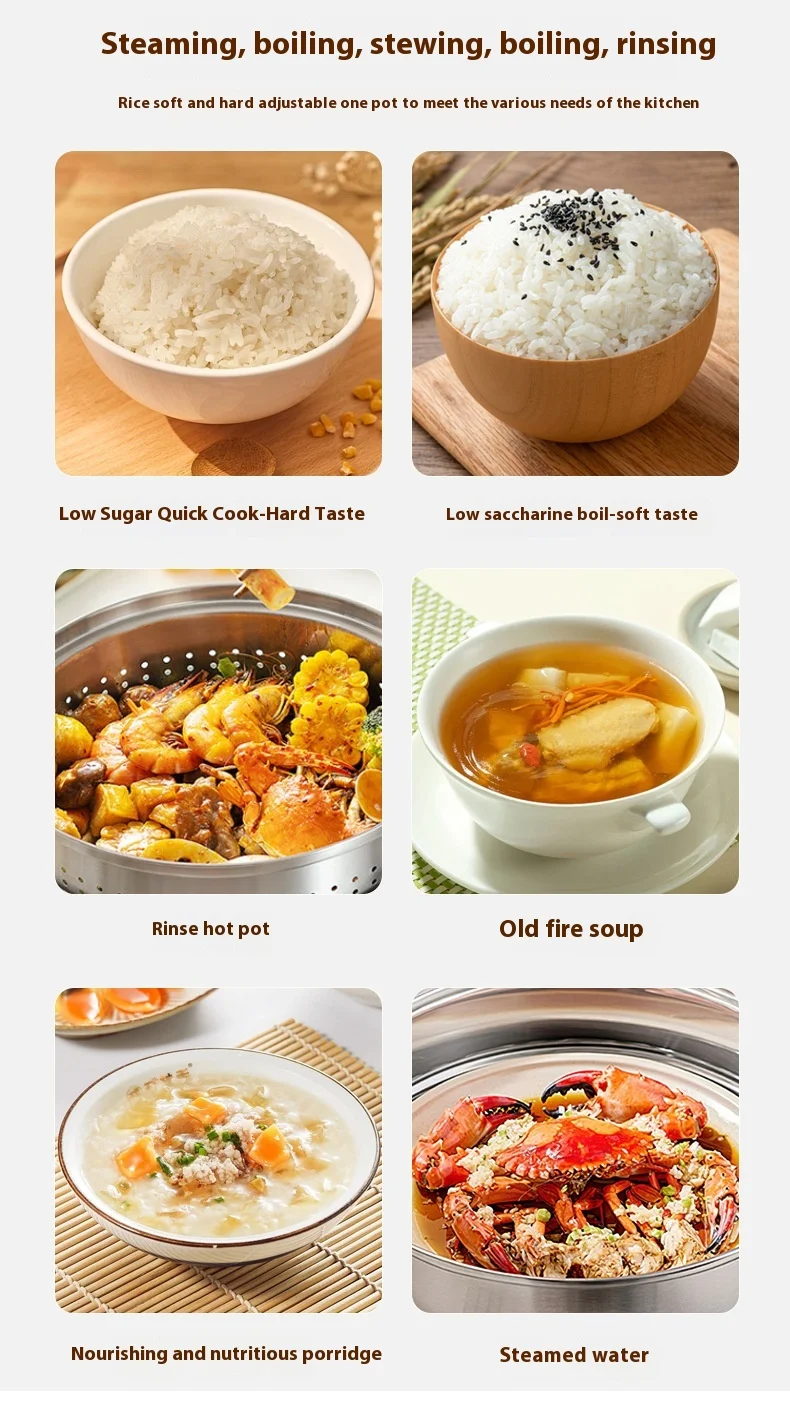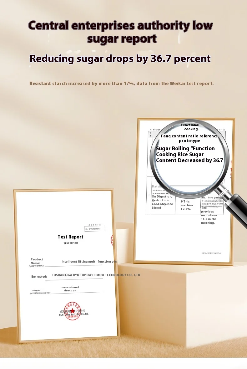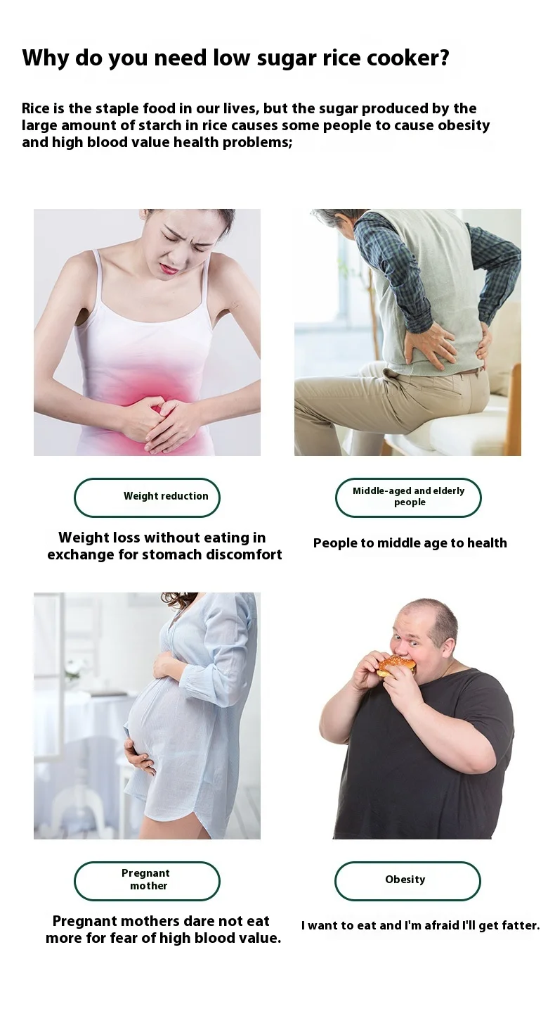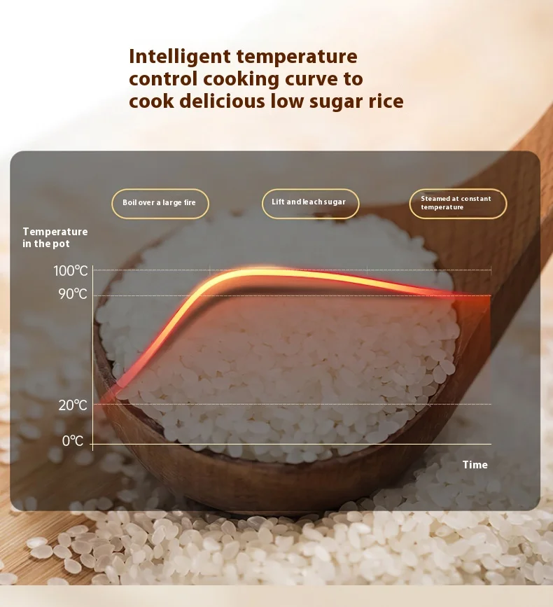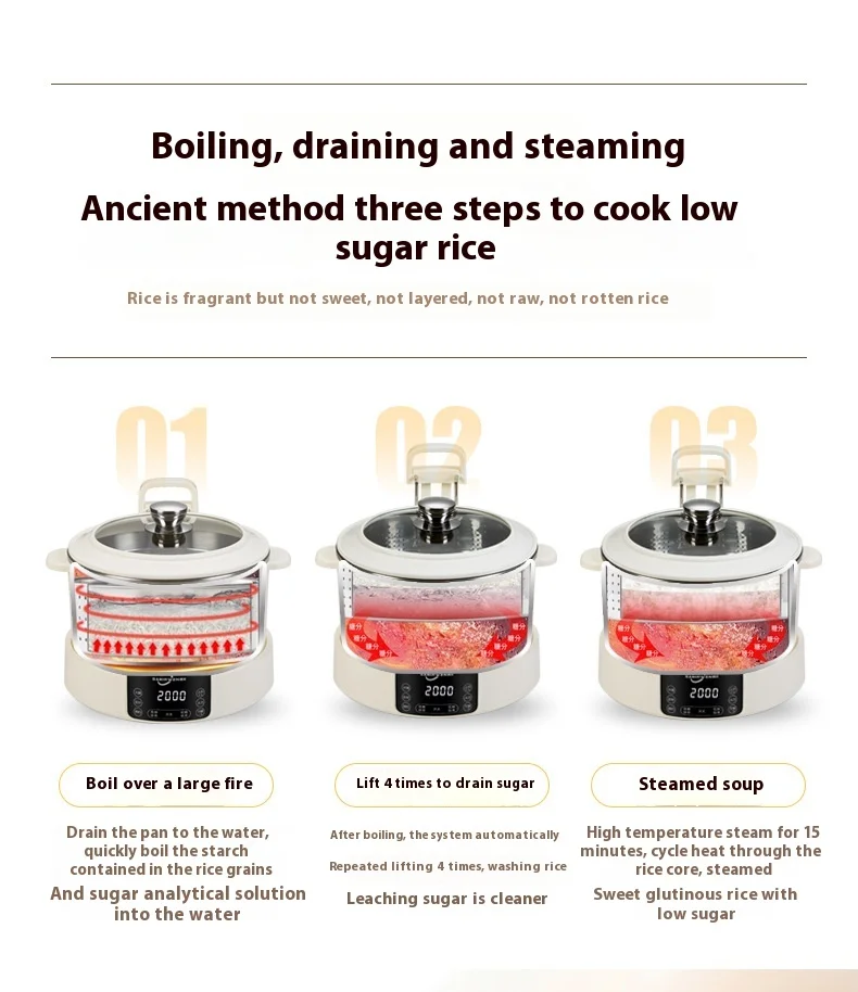 4L Smart Sugar-Reducing Rice Cooker with Lifting Function, automatically separates rice soup from the rice, extracting sugar from the rice to reduce the risk of serious diseases such as diabetes through diet.