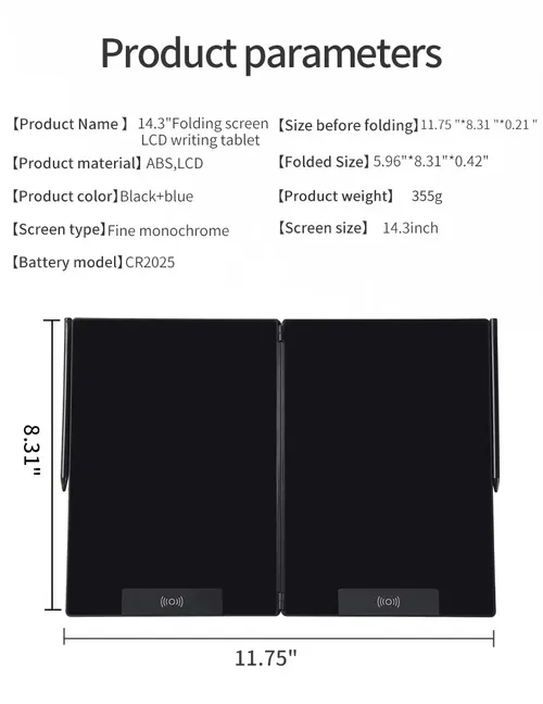 Large Screen Writing Pad 14.3 Inch Dual Full-Screen Foldable LCD Digital Writing Pad Drawing Board LCD WritingTablet